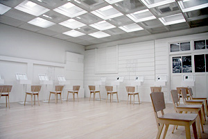 館内には段差等はございませんので、車いすで自由にご移動いただけます。なお、映像の流れる展示室では、室内に椅子が設置されております。ある程度スペースは確保されておりますが、ご利用の際にお申し付けいただければ椅子の移動をいたします。